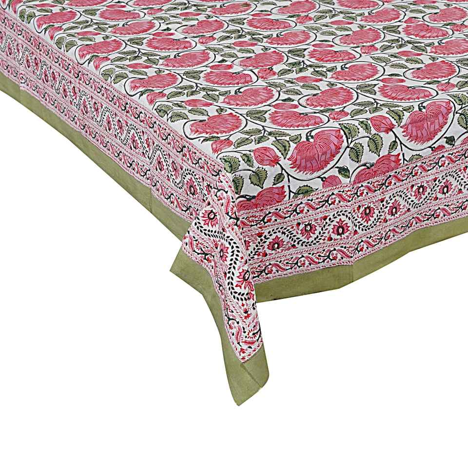 Nappe en coton imprimé floral Hand Block de Jaipur Vaisselle en coton 6 et 4 places Nappe en coton de haute qualité