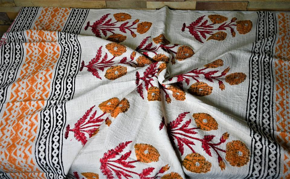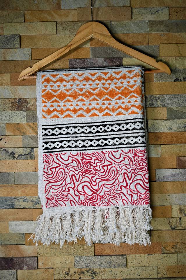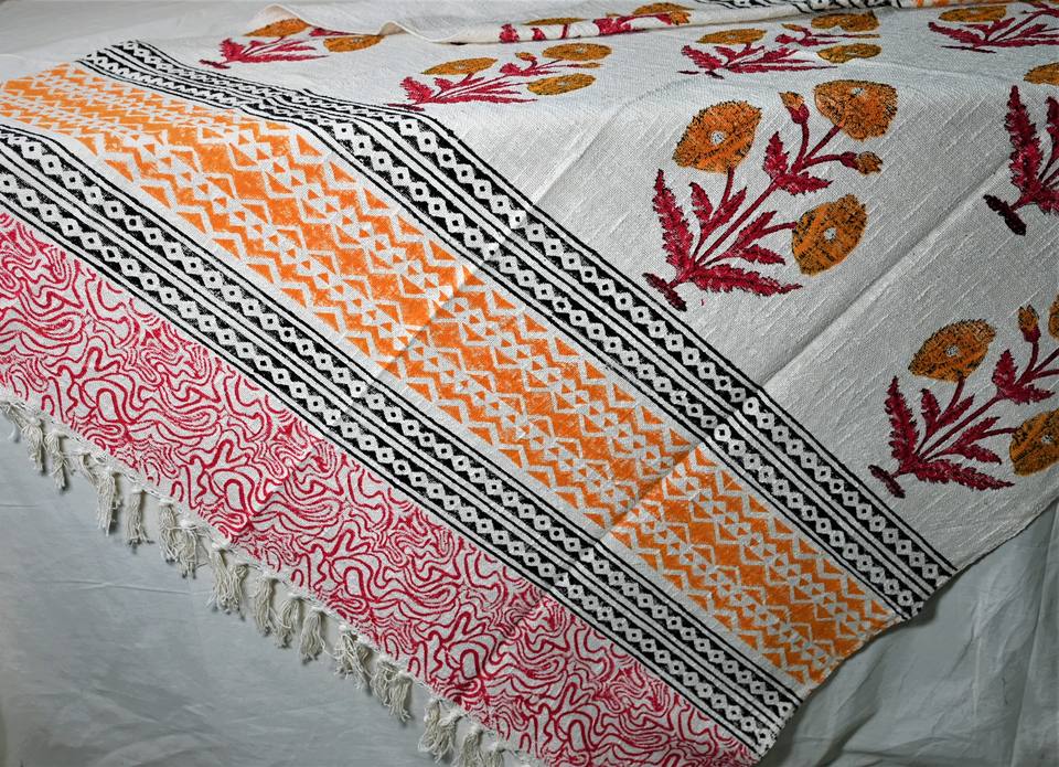 Couverture décorative moderne à franges, imprimée à la main au bloc indien, motif floral, 100% coton biologique, écologique et douce