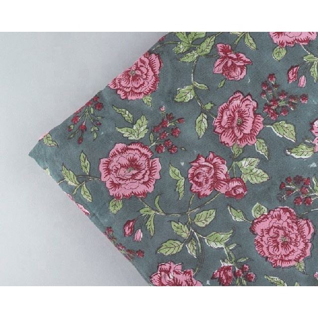 Tissu imprimé floral indien 100% coton doux rose rose gris foncé pour les couvertures de rideaux de chemises pour filles garçons