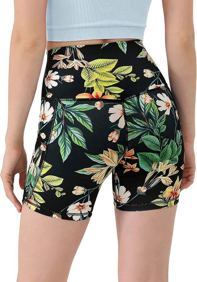 Short de cyclisme et de moto à motif floral imprimé, collant de compression sublimé effet push-up