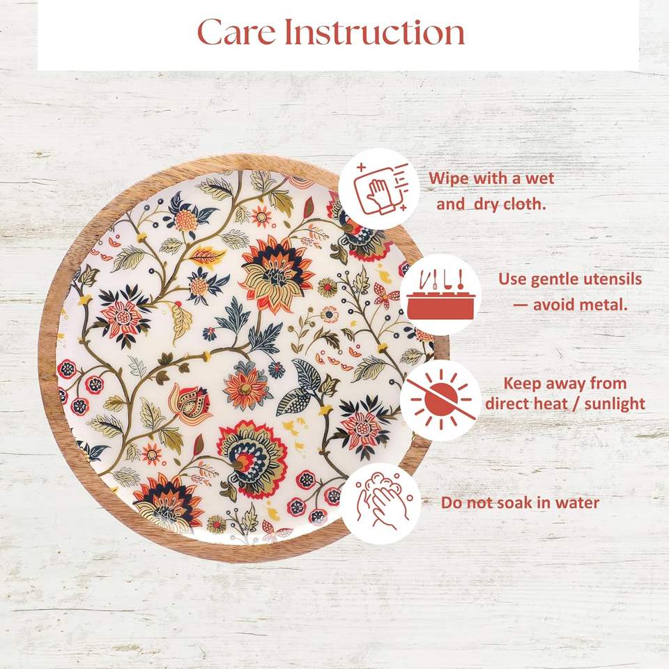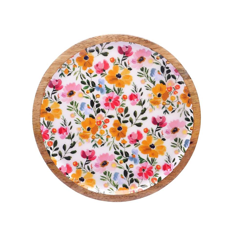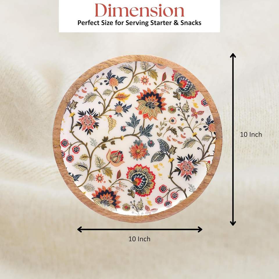 Plateaux de service ronds élégants en bois de mangue à motifs floraux pour collations et dîners, au meilleur prix pour usage domestique