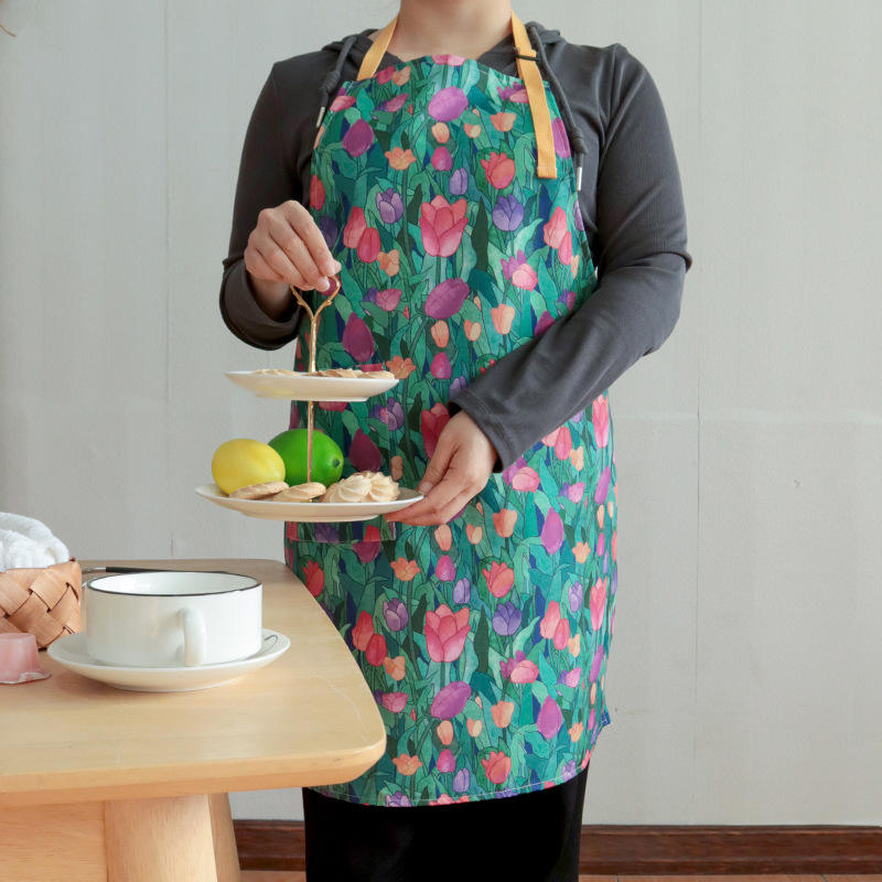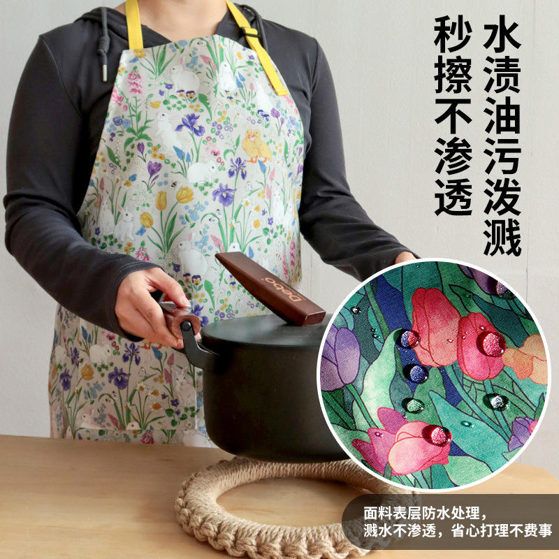 Tablier imperméable à imprimé floral pour adulte, en polyester, pour la cuisine, à usage quotidien, motif avec lapins et fleurs