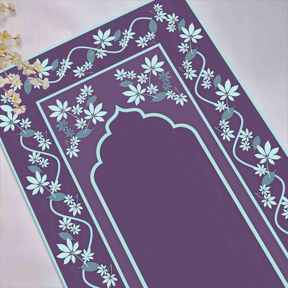 Tapis de prière floral violet : Décoration islamique pour la maison, tapis doux à poils longs