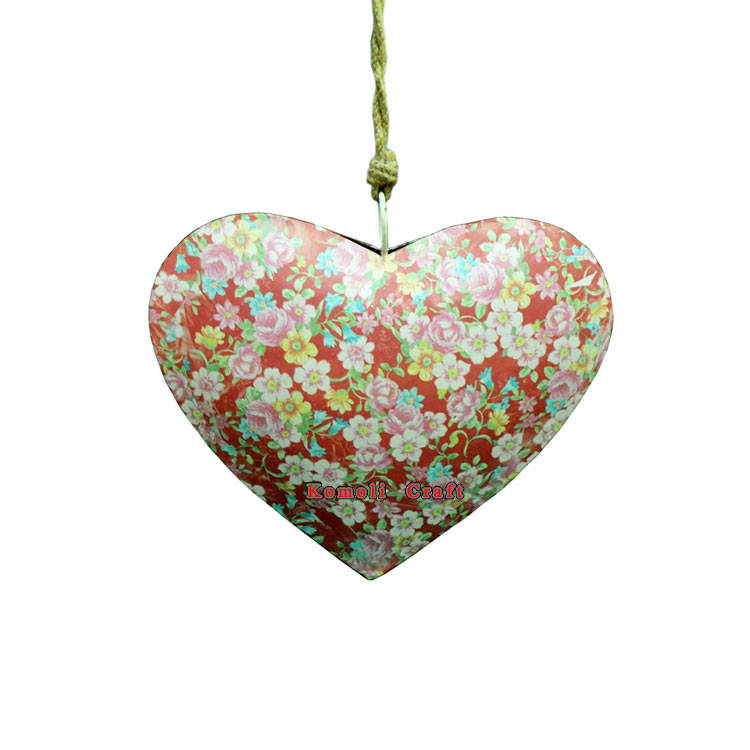 Floral Red Chinar Hand Painted Paper Mache Heart Shaped Christmas Ornaments Decor