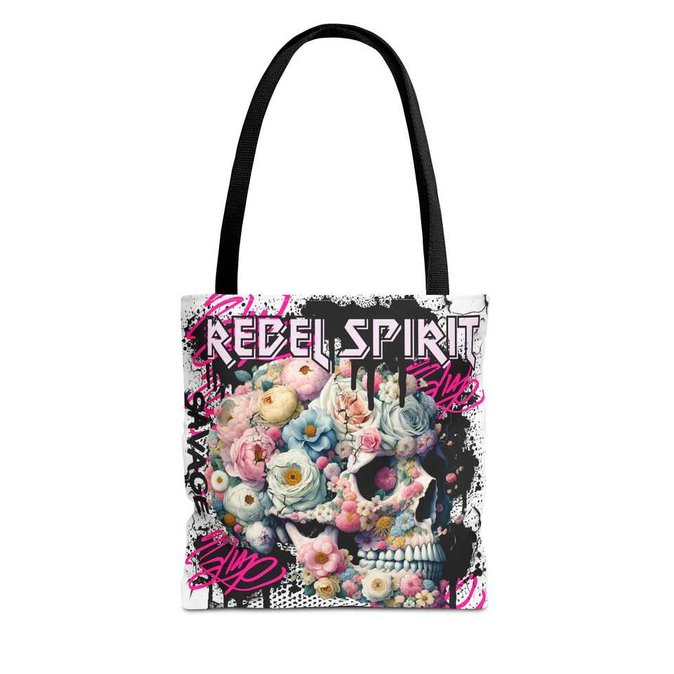 Sac fourre-tout à motif floral et tête de mort, grande capacité, en cuir PU durable, fermeture éclair, broderie de lettres, couleur unie
