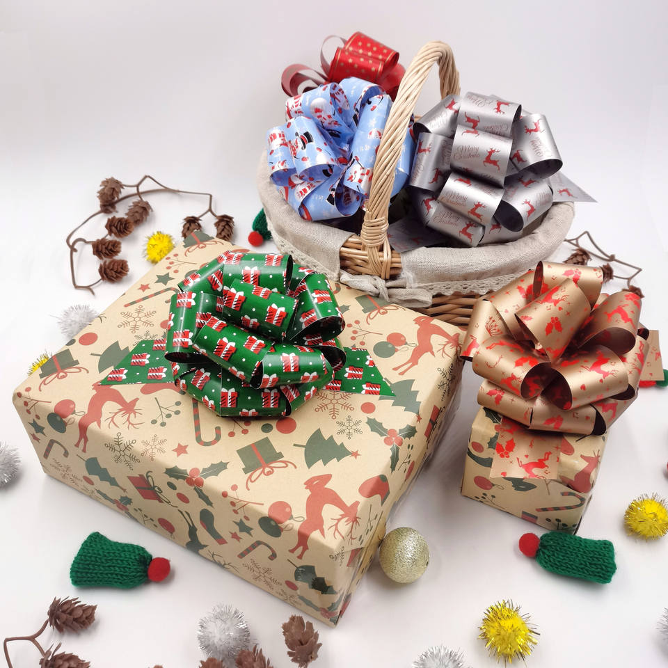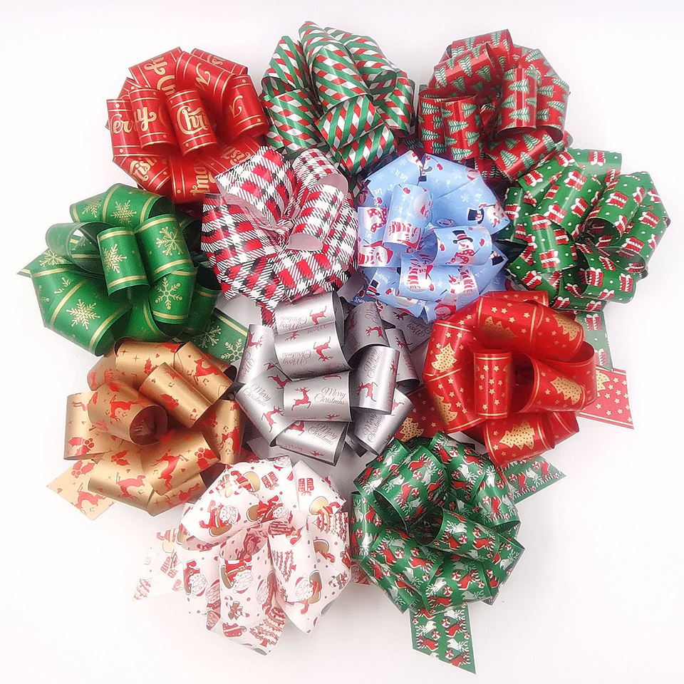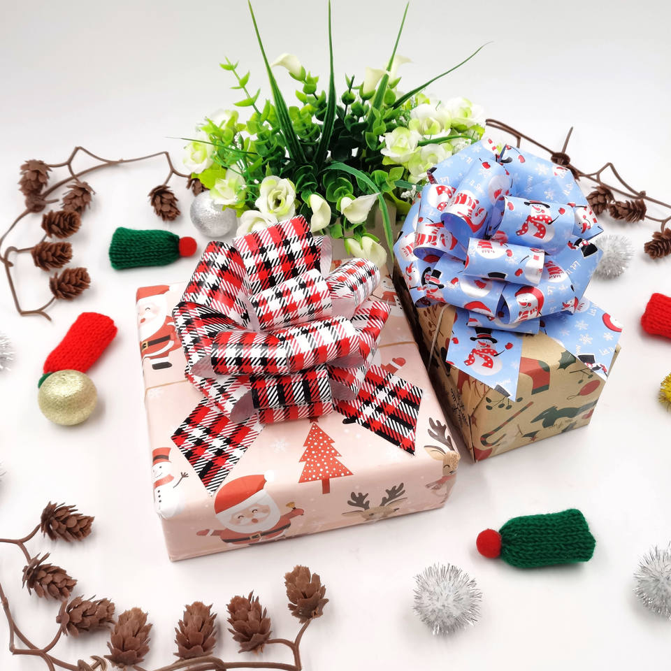 Emballage cadeau de style floral ruban en plastique bas prix grand nœud à tirer pour mariage anniversaire décoration de noël ruban cadeau à pompon