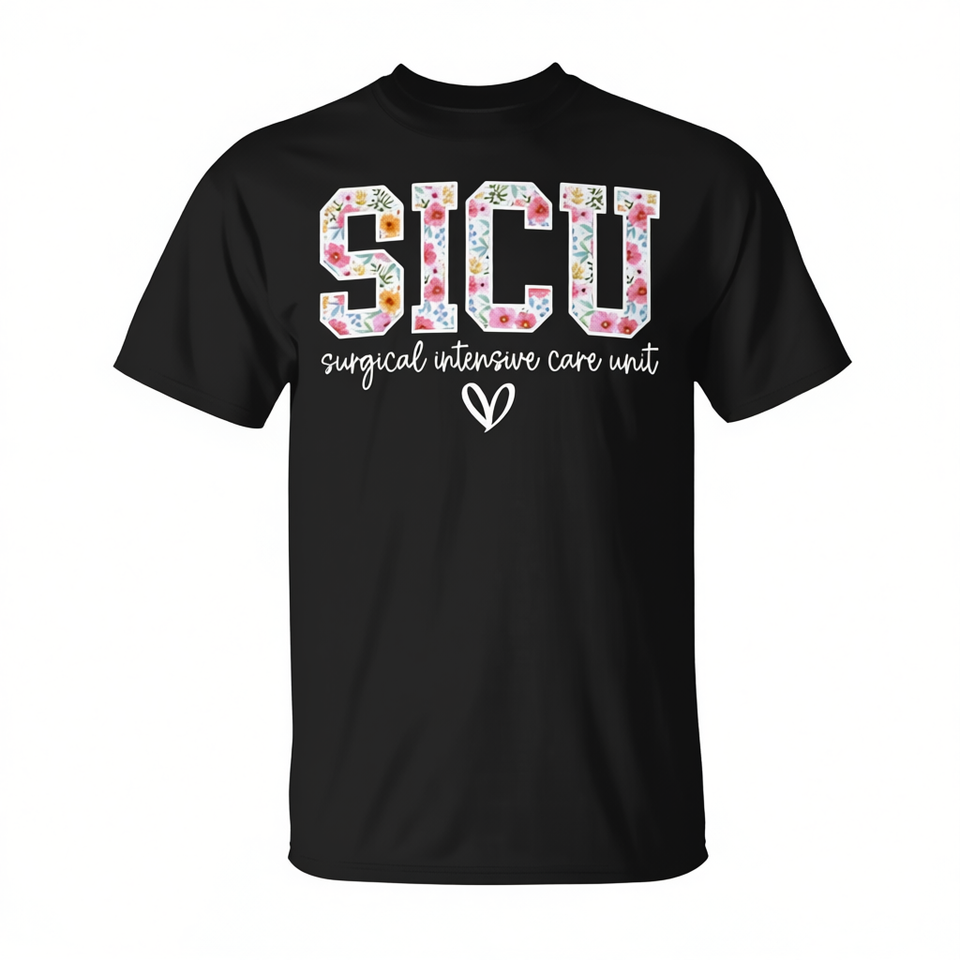 T-shirt d'appréciation pour infirmières en soins intensifs (SICU) à motif floral, idéal pour les cadeaux personnalisés et les promotions