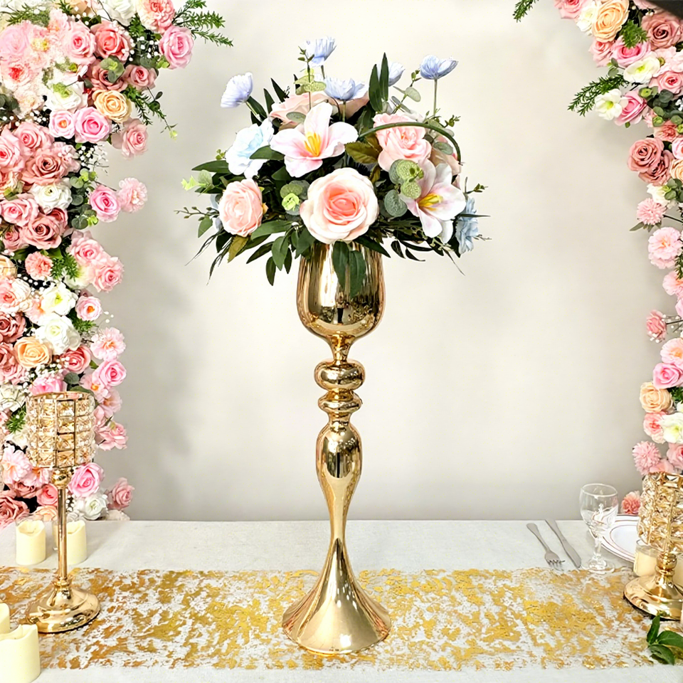 Support de vase à fleurs floral pour professionnels de l'événementiel, grand centre de table en métal doré pour mariage