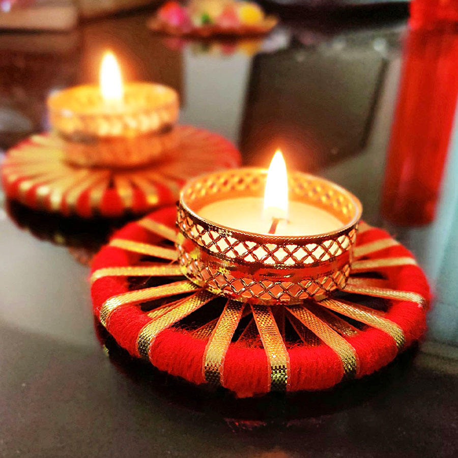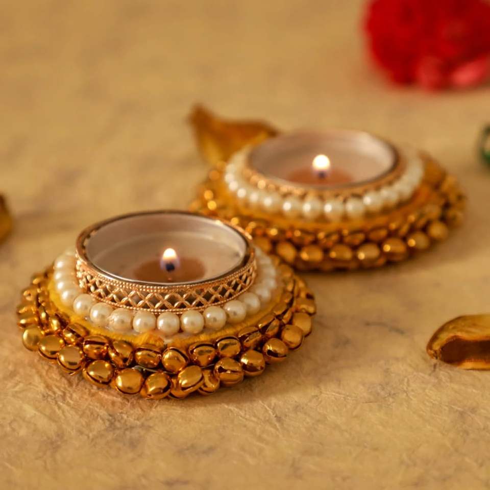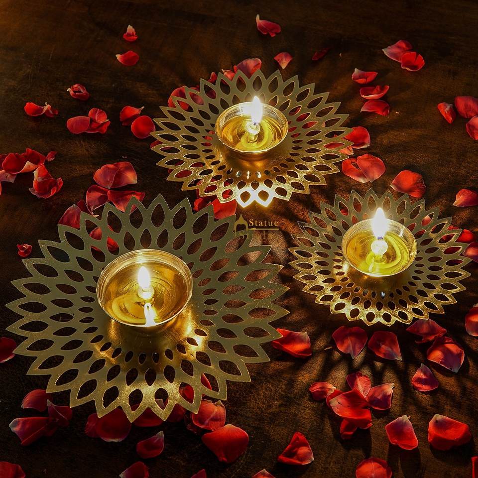 Floral Resin Tealight Candle Holders Set Art Deco Design Indian Home Decoration Diwali Pooja Accessories
