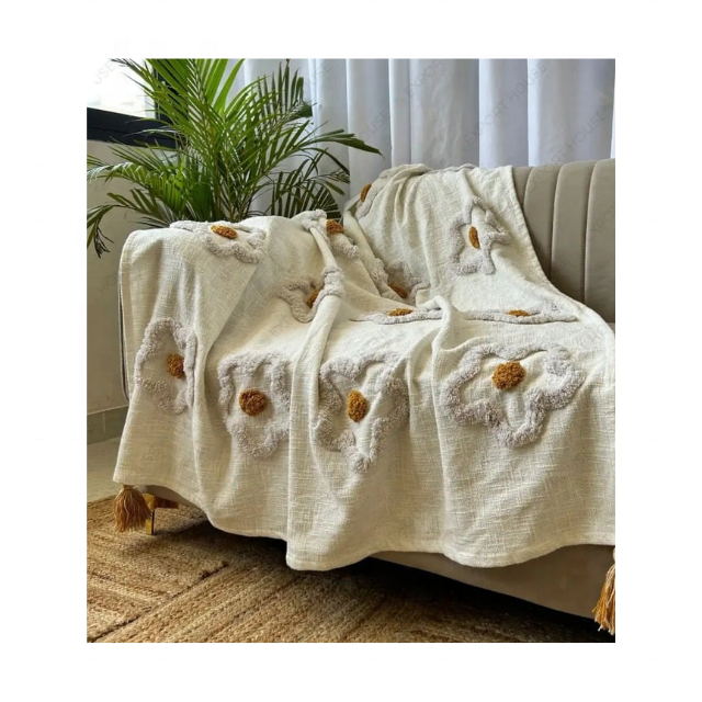 Floral Tufted Premium Chenille 60x80in High GSM 500 Craftmark India For Buyers Wanting Deluxe Winter Ready Comfort Bed Throw