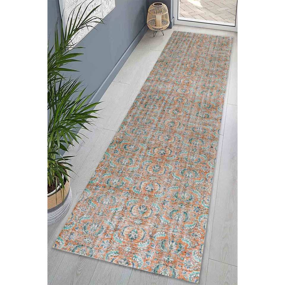 Tapis turc Oushak floral : antidérapant, lavable en machine, tapis imprimé, tapis en chenille