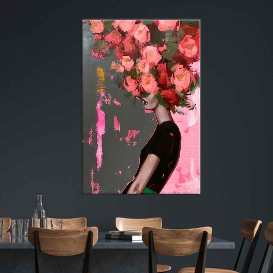 Toile de portrait de femme florale : Impression d'art abstrait moderne pour décoration murale, TOILE ENVELOPPEE