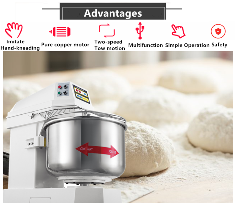 Machine à mélanger la pâte à farine cuisson 25kg 50kg 75kg 100kg mélangeur à spirale mélange de farine pâte à pizza mélangeur à pain industriel prix vente
