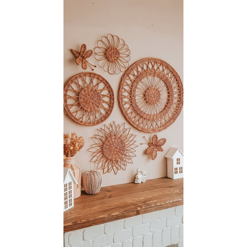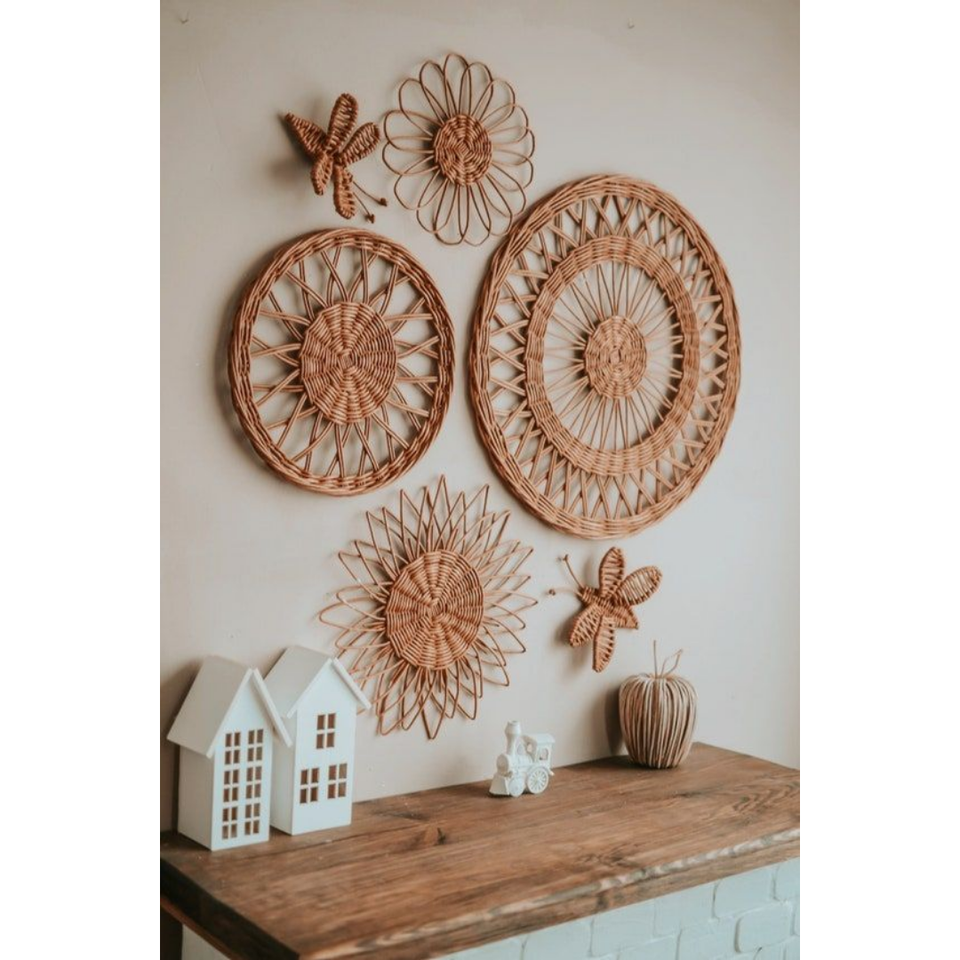 Fleur accessoires salle de jeux rotin pépinière décor bébé enfants chambre décoration tentures murales pour la vente en gros