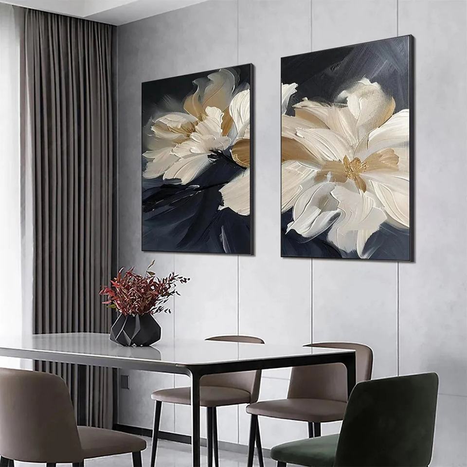 Peinture à l'huile à motif de fleurs, toile peinte à la main, art mural pour hôtel, salon, appartement, dortoir, décoration de chambre d'hôtes
