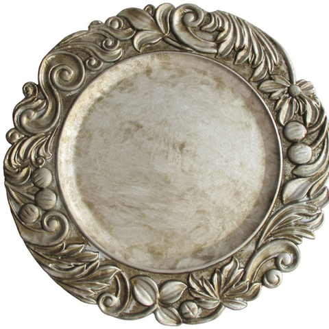 Assiette de Présentation à Bordure Motif Floral en Acier Inoxydable/Aluminium Écologique et Durable, MOQ 100 pièces pour Décoration de Table Événementielle et Mariages