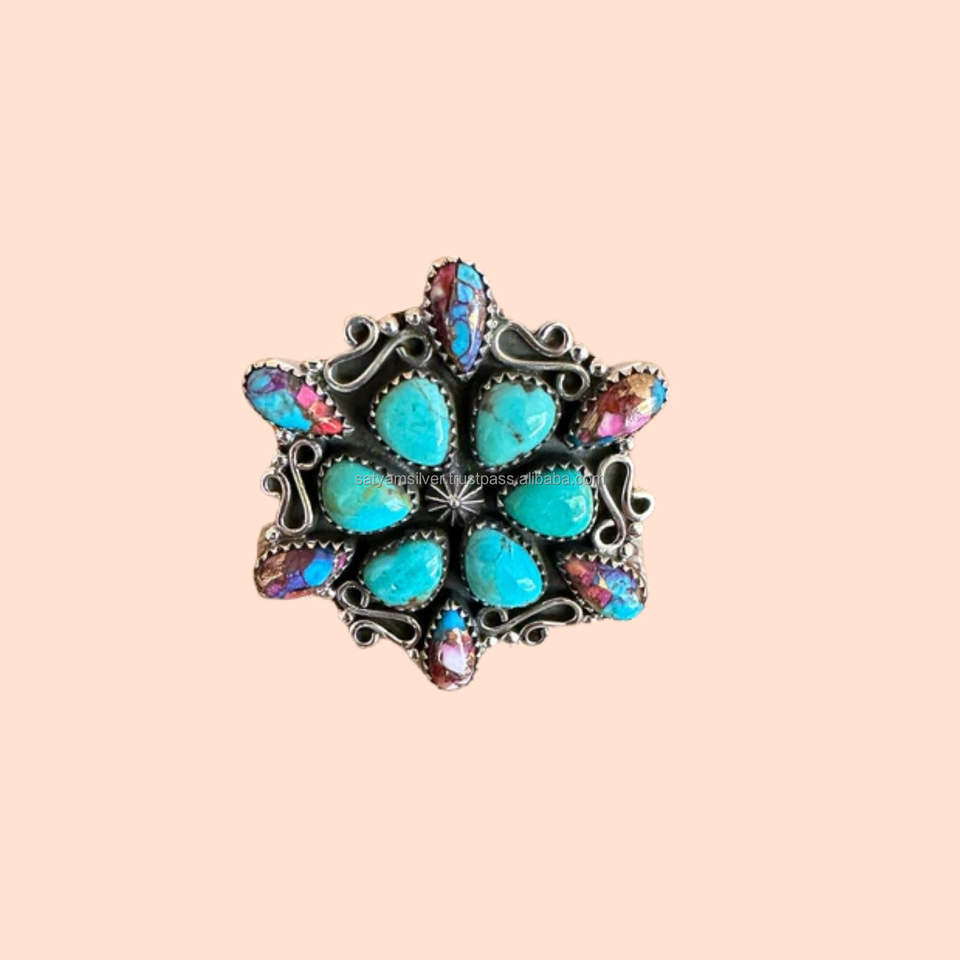 Bague en grappe de conception de fleurs en argent massif 925 avec pierre précieuse rose Dhalia Bague de créateur artisanale bohème pour fête de mariage