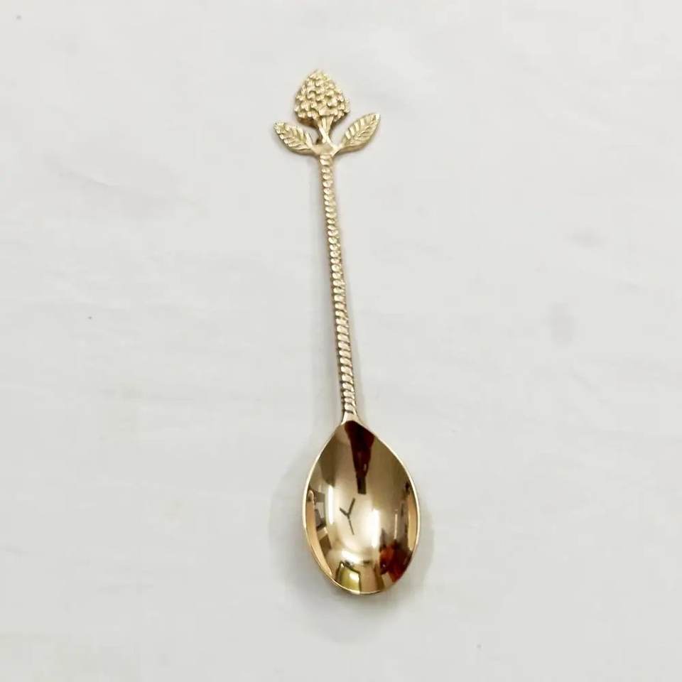 Cuillère en laiton faite à la main avec manche à motif floral, accessoires de cuisine, cuillère à bar courte avec finition dorée en relief