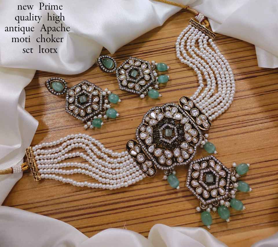 Ensemble de boucles d'oreilles avec collier ras du cou indien fait à la main avec zircon cubique pour femmes