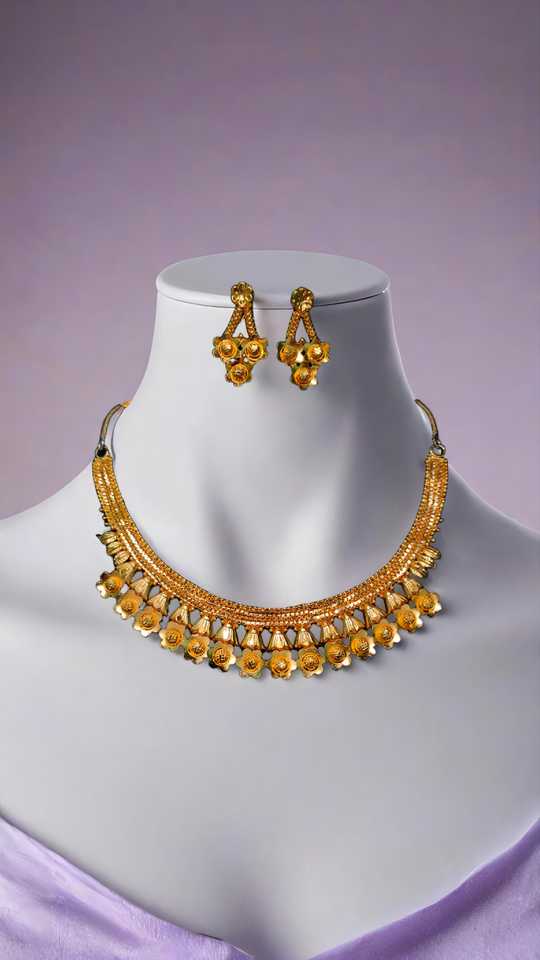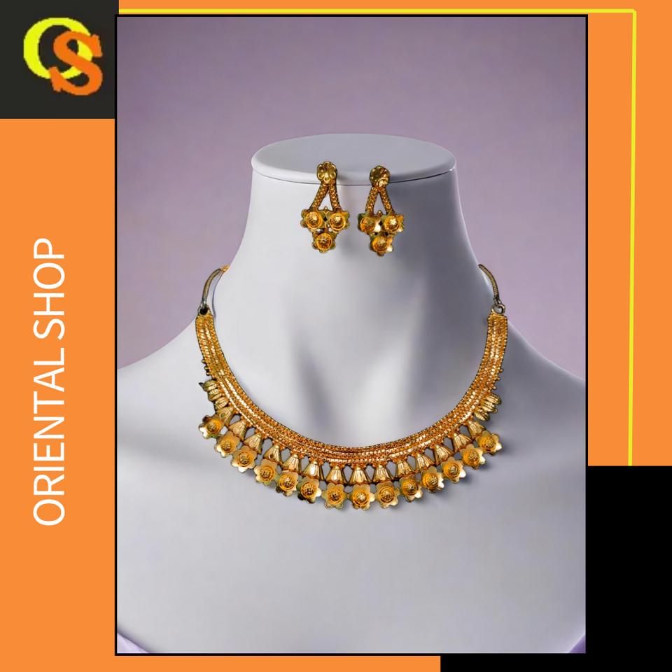 Flower Designed Necklace Earrings Set with 22K Gold Plated Unique Style Women Wear Necklace Earrings Set Jewelry