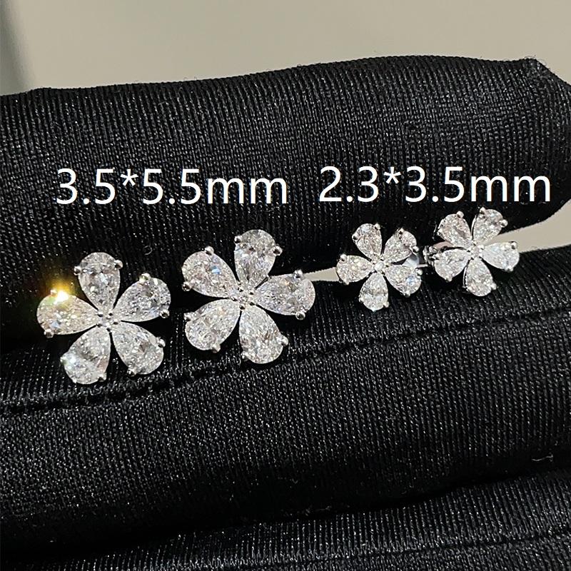 Boucles d'oreilles en forme de fleur en or massif 10 carats, diamants de laboratoire cultivés en vrac de forme poire DEF VS, 2,3*3,5 mm, 3,5*5,5 mm