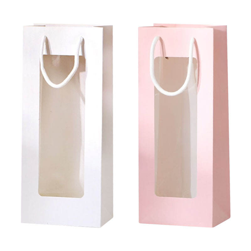 Sac cadeau pour fleurs avec poignée, sacs d'emballage pour vin avec fenêtre, sacs en papier pour emballer des fleurs pour la Saint-Valentin, un anniversaire, un mariage