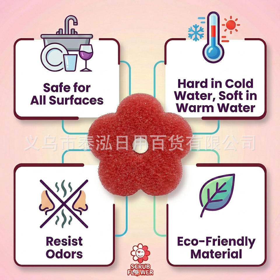 Éponge nettoyante en forme de petite fleur rouge, pour la cuisine, lot de 3, texture sensible à la température, change de couleur