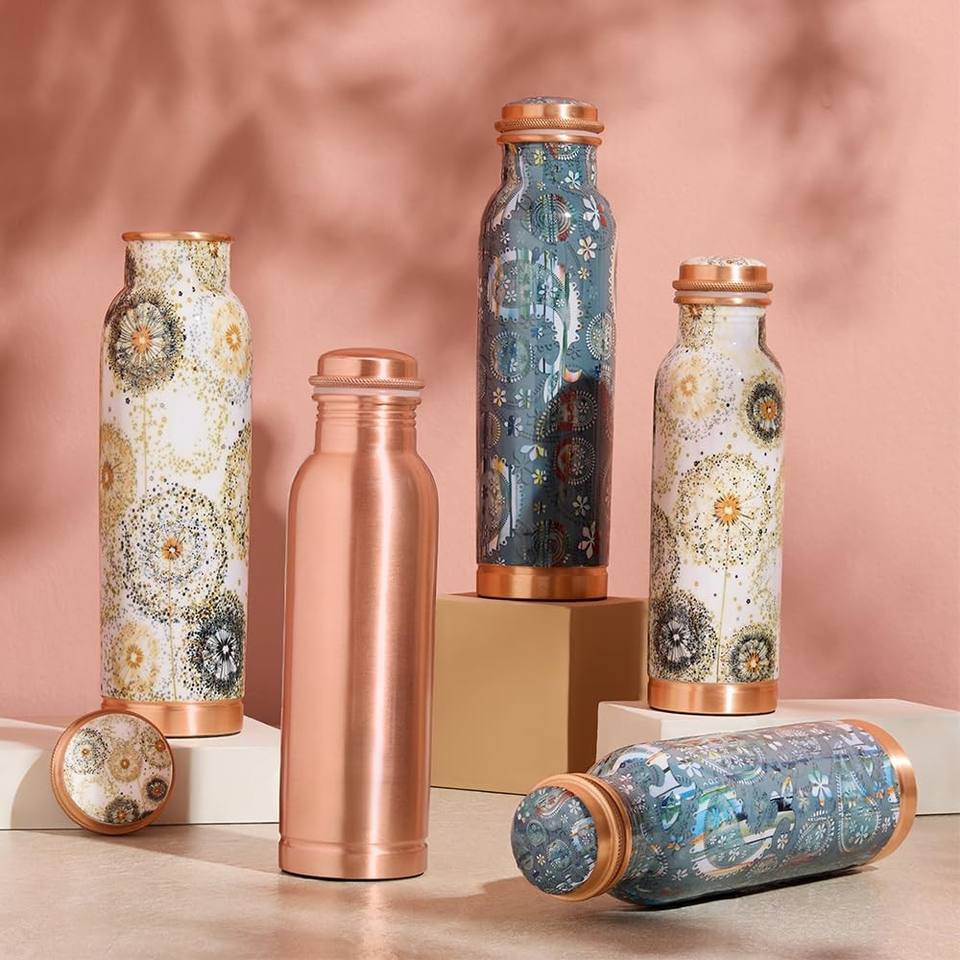 Flower Mandala Art Copper Drinking Bottle Ayurvedic Copper Bottle with Mandala Print Printed Copper Bottle Meenakari Style