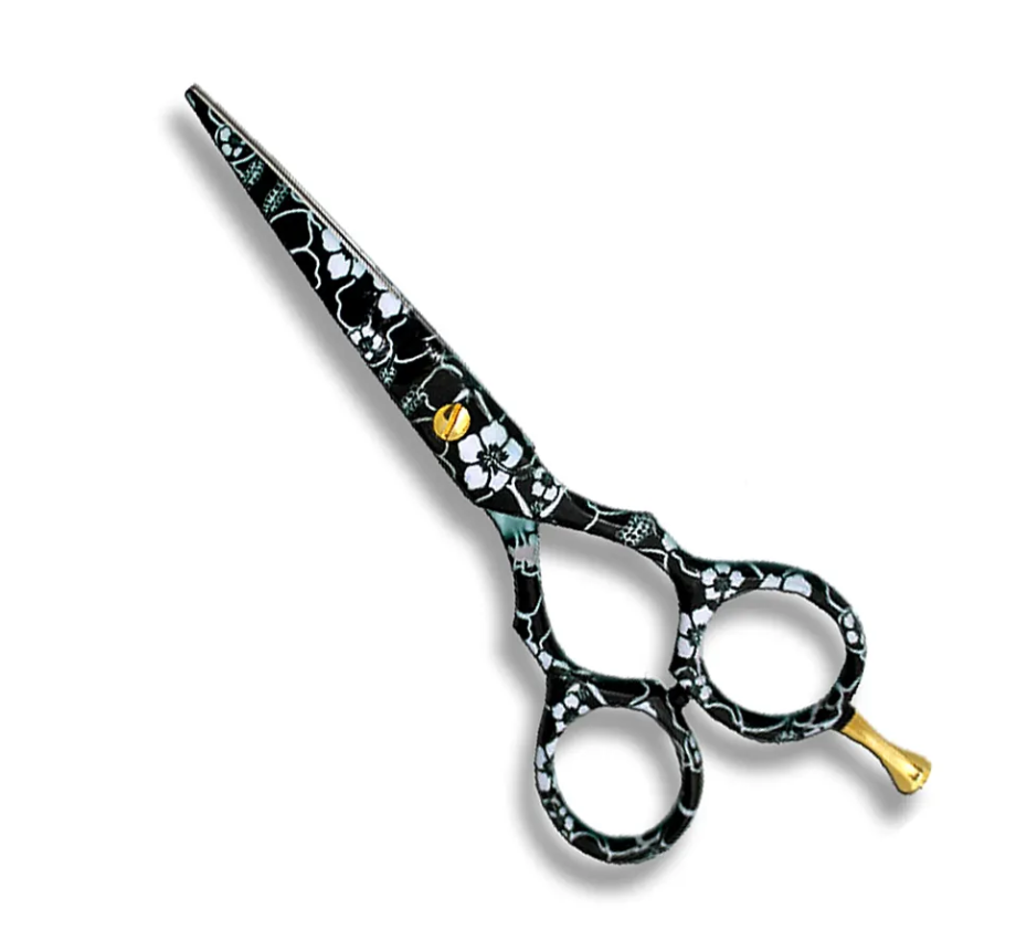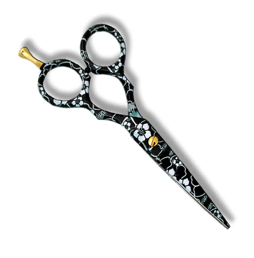 Fleur Papier Enduit Or Repose-doigt Cheveux Ciseaux Salon De Beauté Lame Droite Ciseaux De Coiffeur avec Poignée En Acier Inoxydable