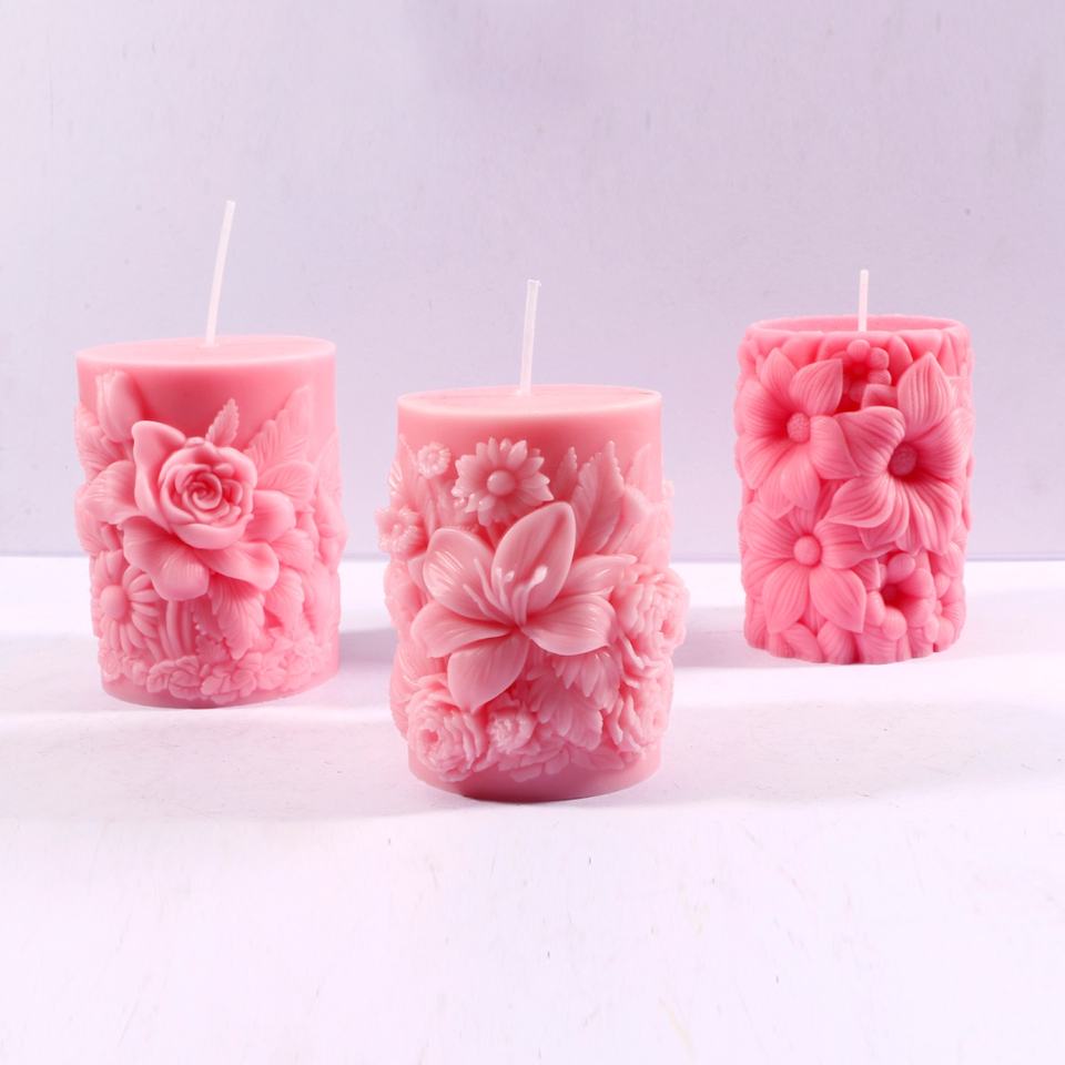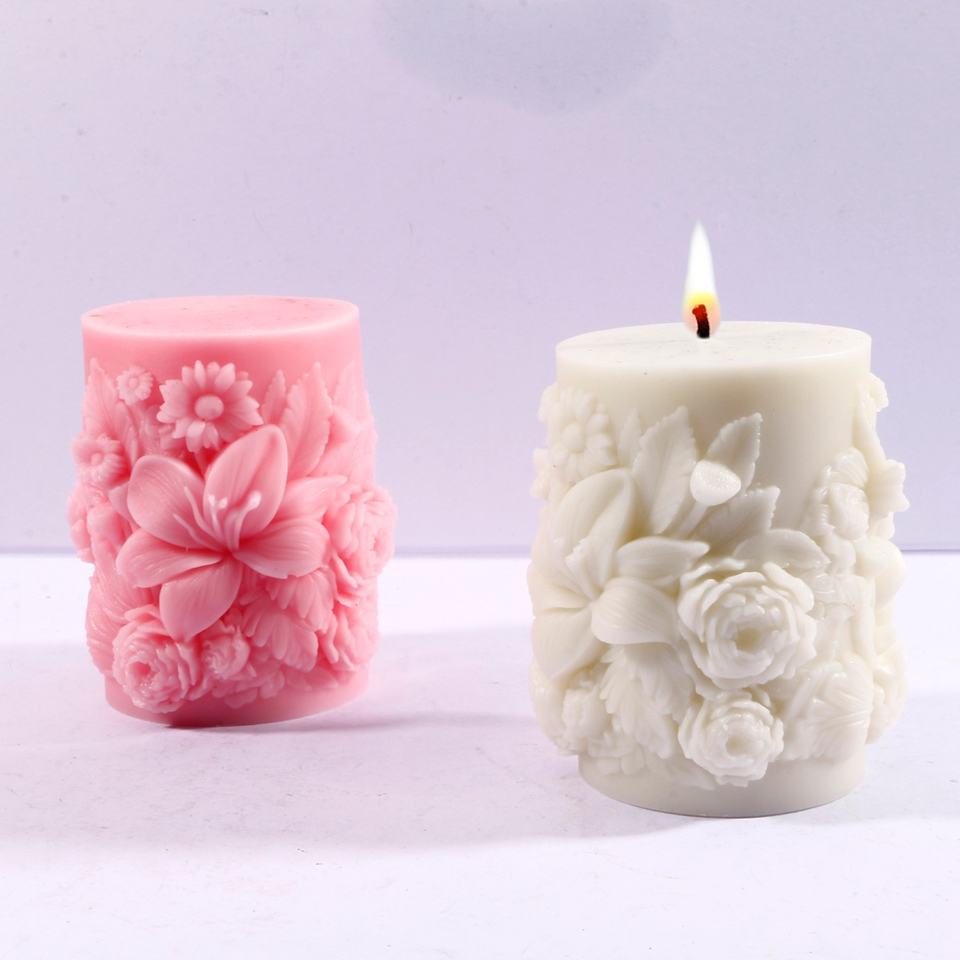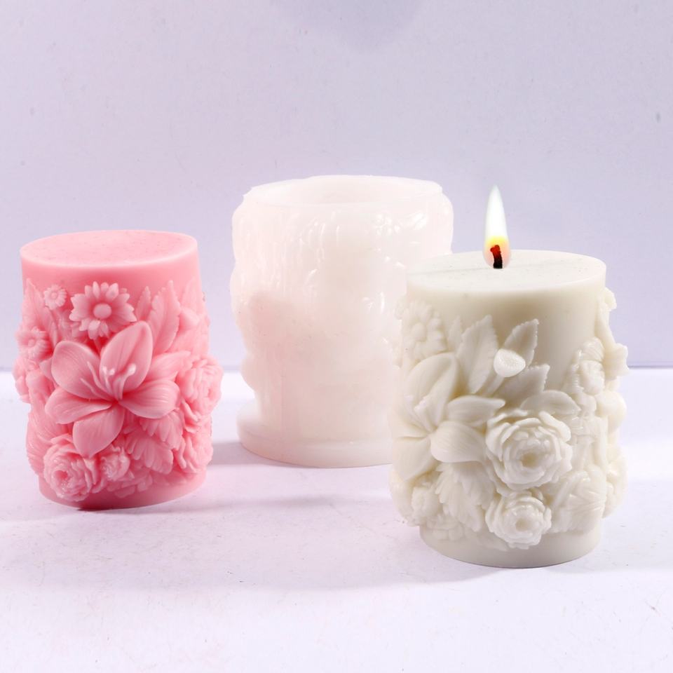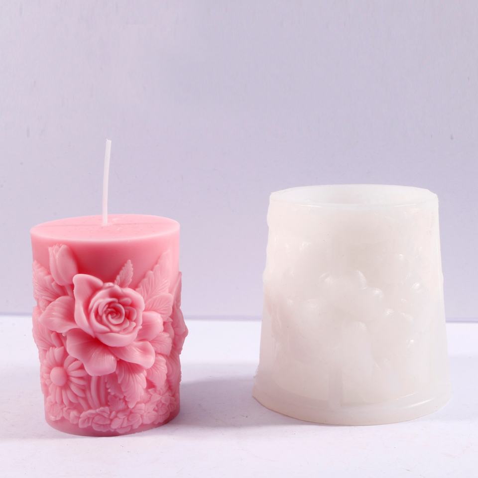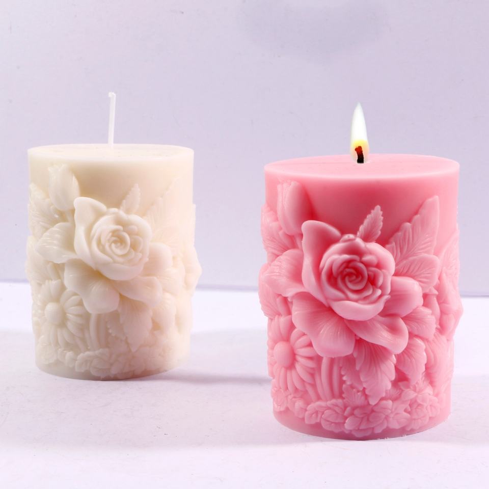 Moule à bougie en résine en forme de pilier de fleurs, moule en silicone gaufré pour la décoration de la maison, moule à bougie parfumée