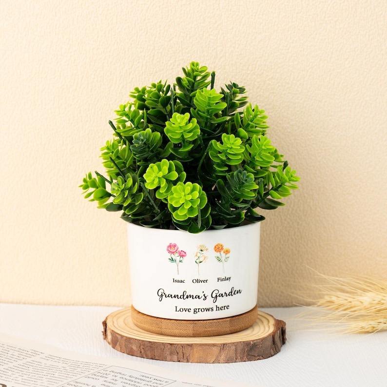 Pot de fleur Table en pot en céramique personnalisée double face avec plateau en bambou cadeau One-Piece Custom