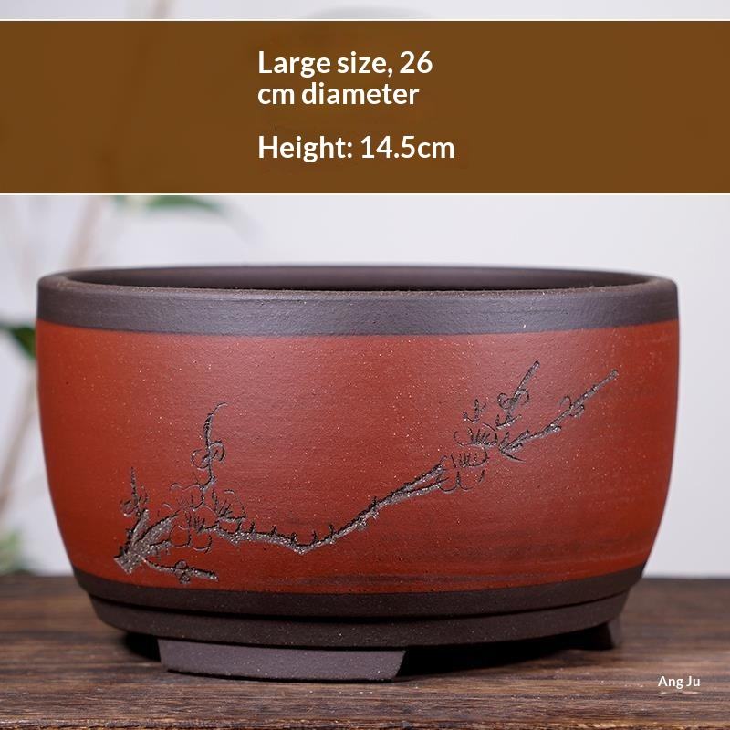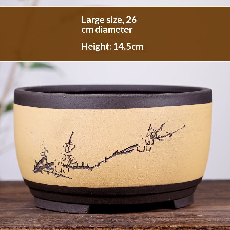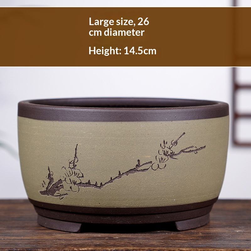 Pot de fleurs en sable violet pour plantes succulentes, de grande, moyenne et petite taille, en forme de tambour, style chinois simple, respirant, pour jardinage domestique, pot vert