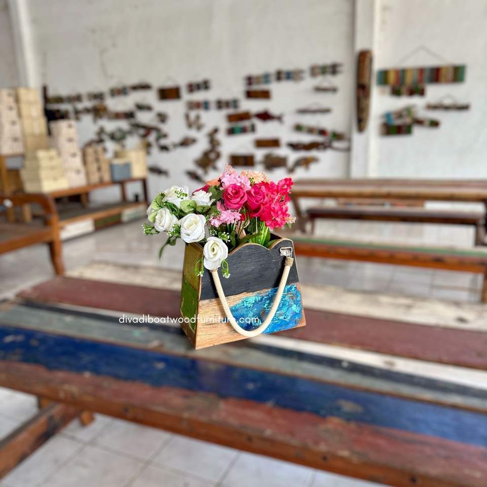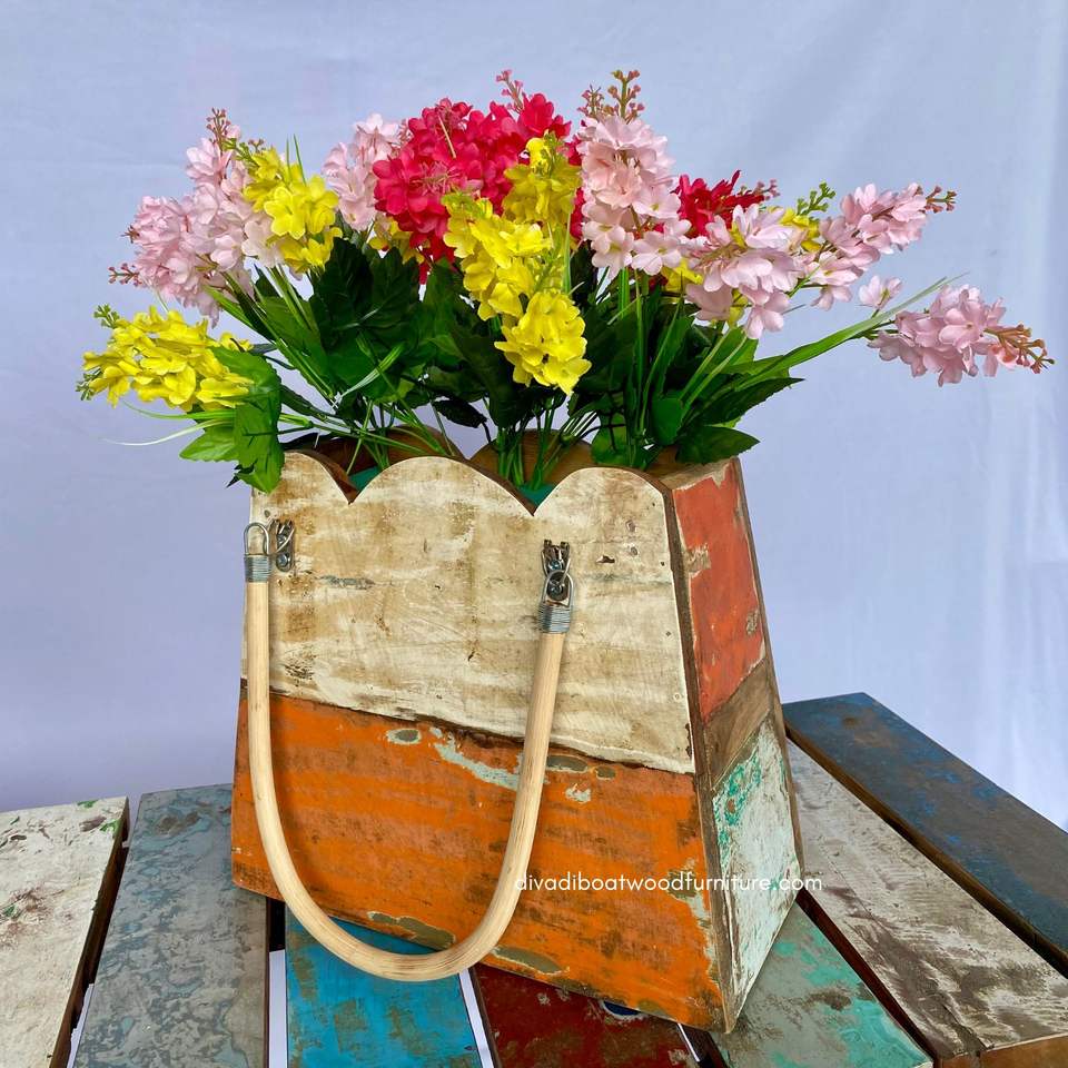Pots de fleurs / Sacs à fleurs en bois de bateau recyclé couleur naturelle pour la décoration intérieure, extérieure et de jardin, jardinière Awan Rattan/Mendong Medium