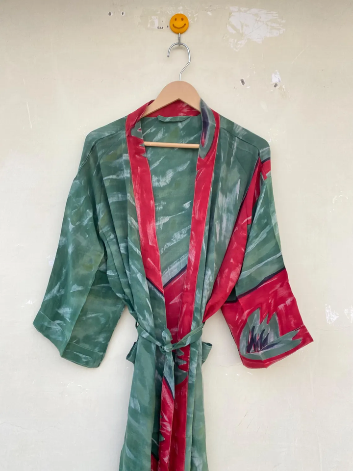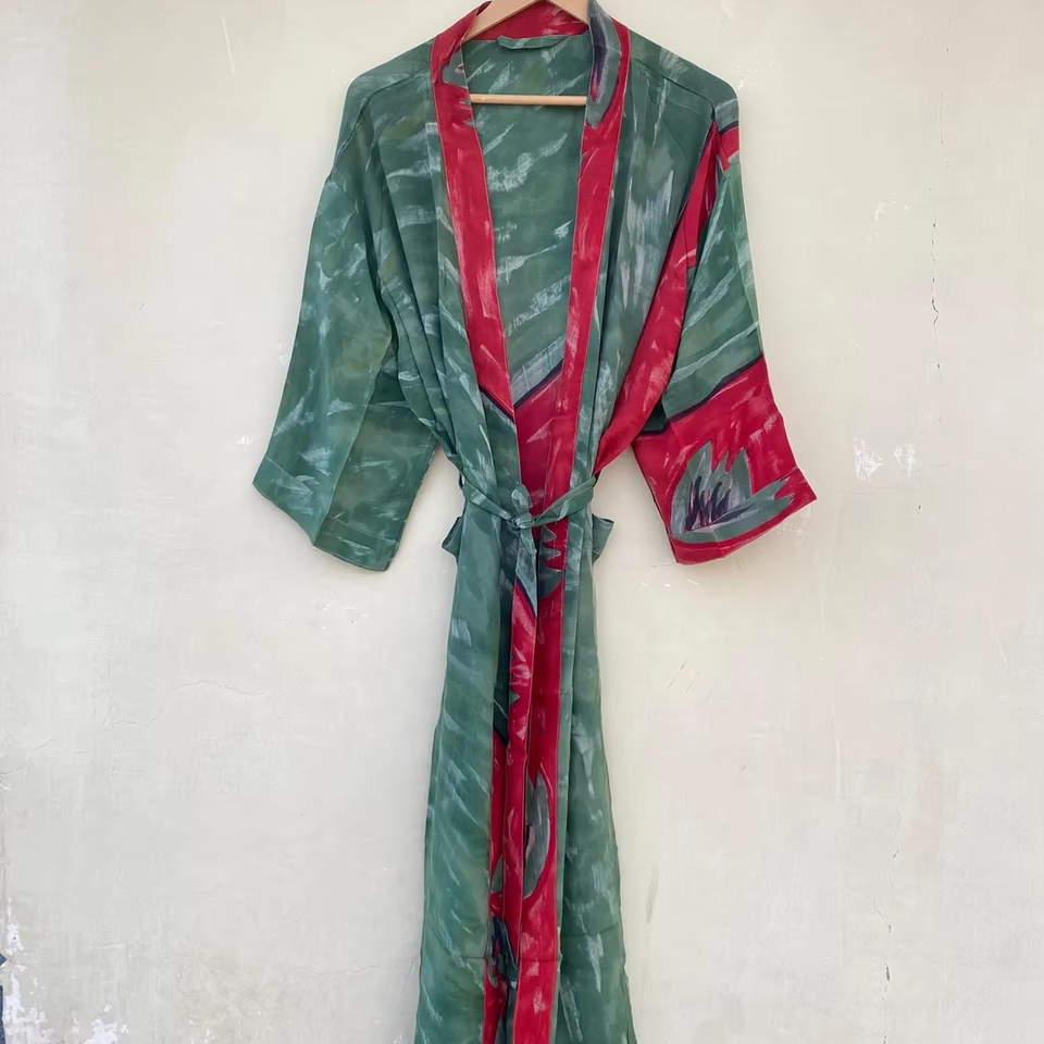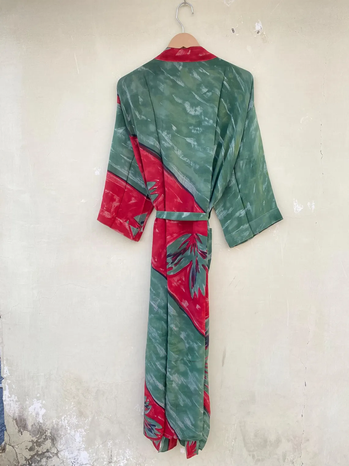 Flower Print Long Silk Kimono Lightweight Boho Lounge Dress for Daily Life for Summer Autumn & Spring Perfect As Bridesmaid Gift
