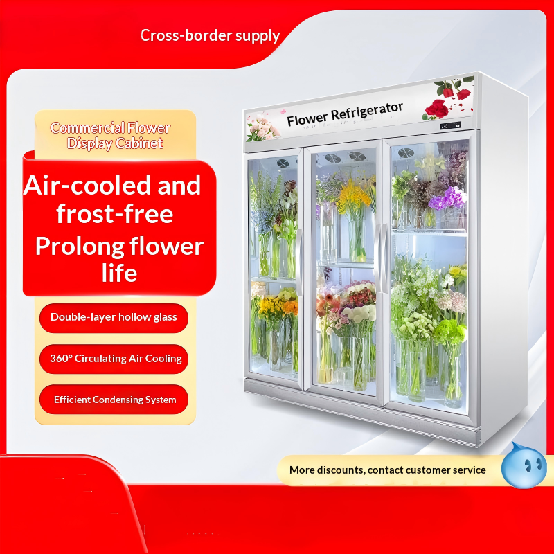 Vitrine Réfrigérée pour Fleurs, Réfrigérateur Commercial pour Fleuriste, Trois Portes, Maintien au Frais, Refroidissement par Air, Sans Givre