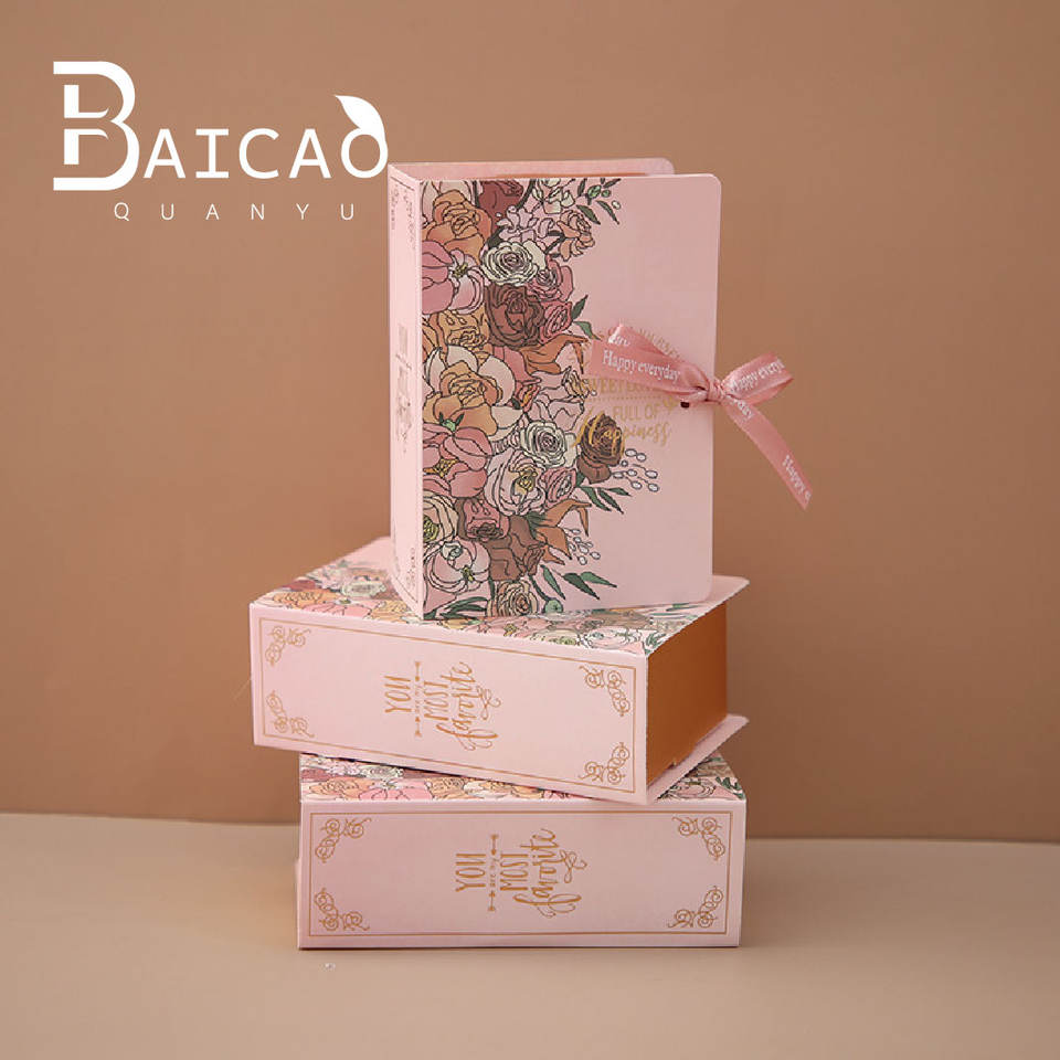 Boîtes en carton en forme de livre avec ruban fleuri fait à la main pour bonbons, chocolat, nourriture, emballage, décoration de mariage, fête de vacances