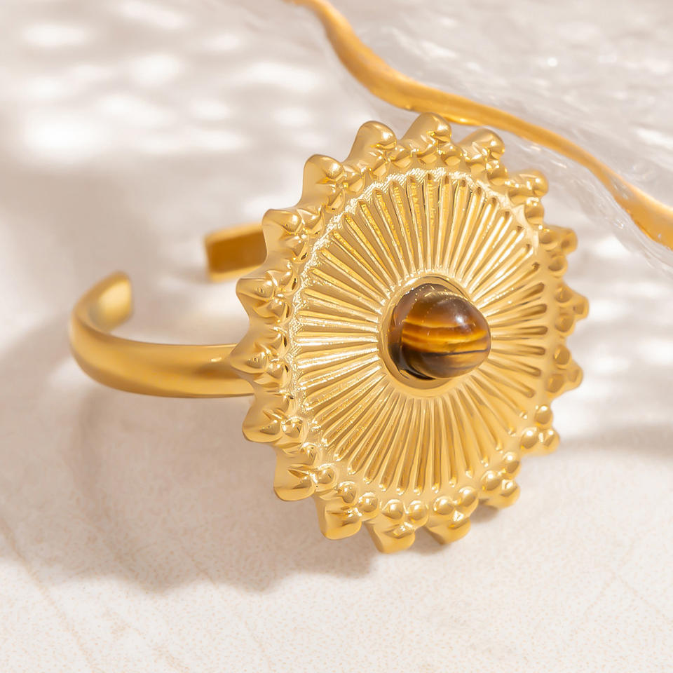 Bague plaquée or en forme de fleur avec incrustation de perles pour femme, bijoux cadeau