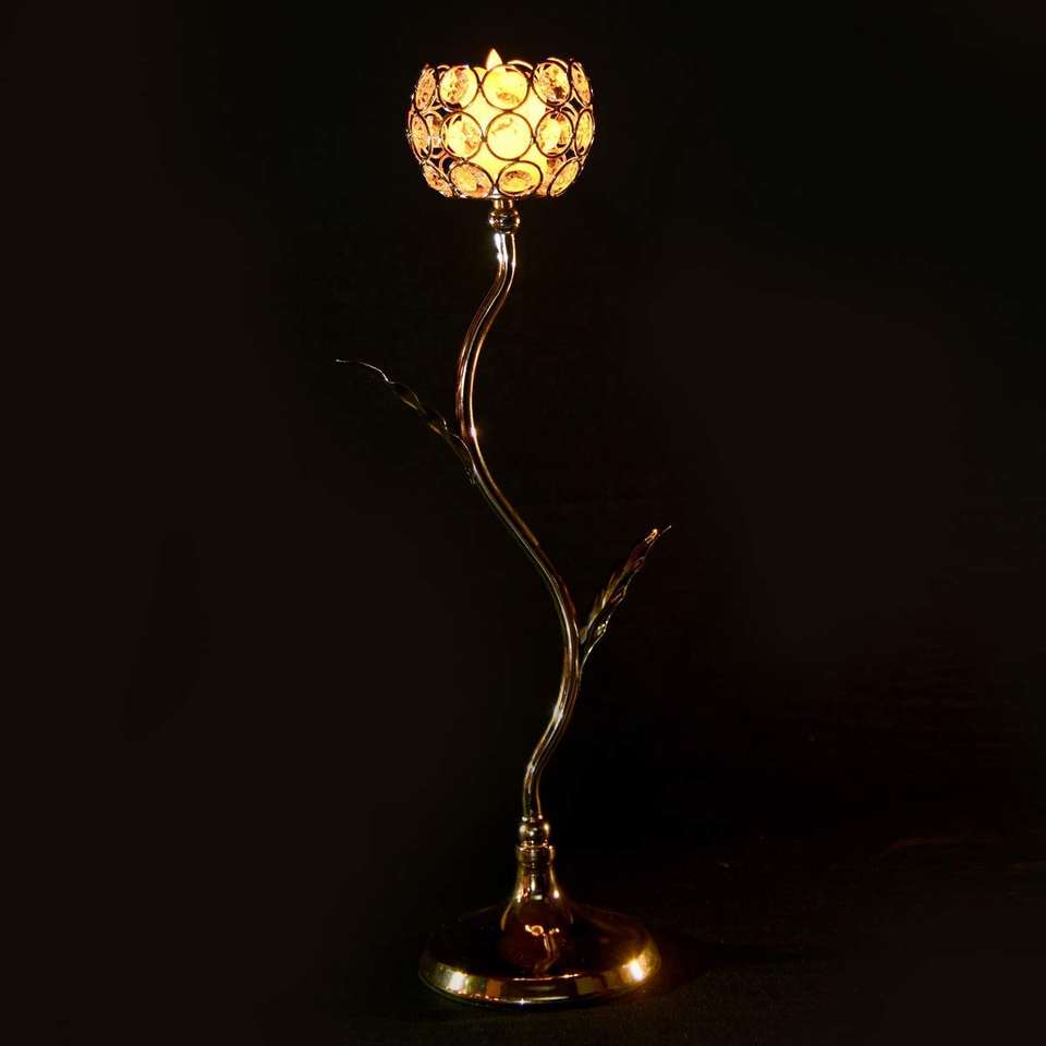 Porte-bougie décoratif en forme de fleur pour la maison, en aluminium et cristal, pour la maison, le bureau et la décoration de mariage