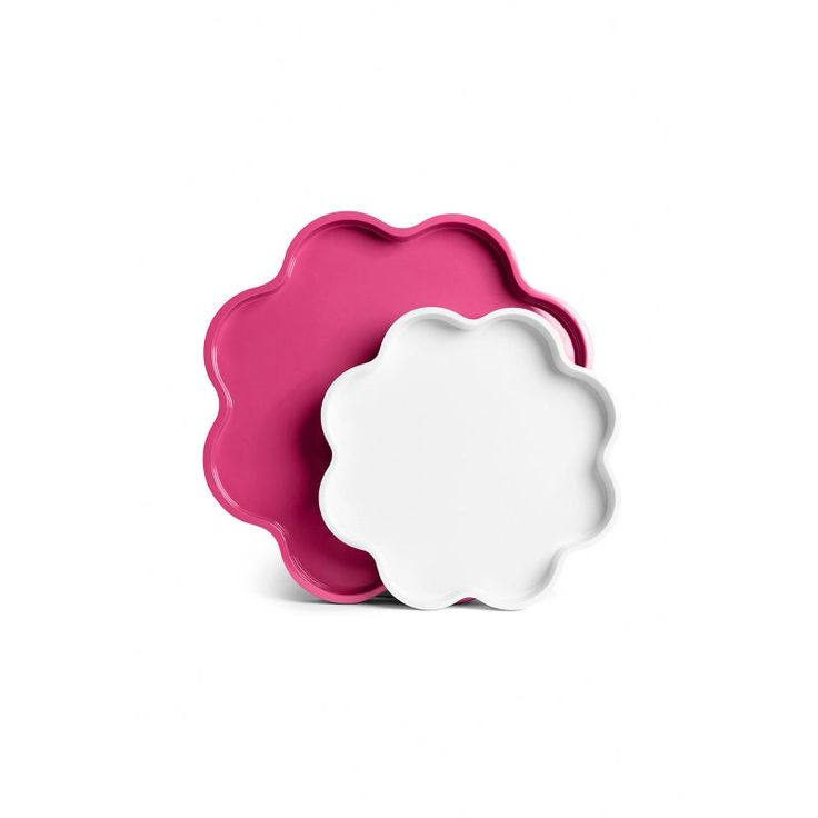 Plateau de service en laque rose et blanche en forme de fleur pour la décoration de la maison fabriqué au Vietnam