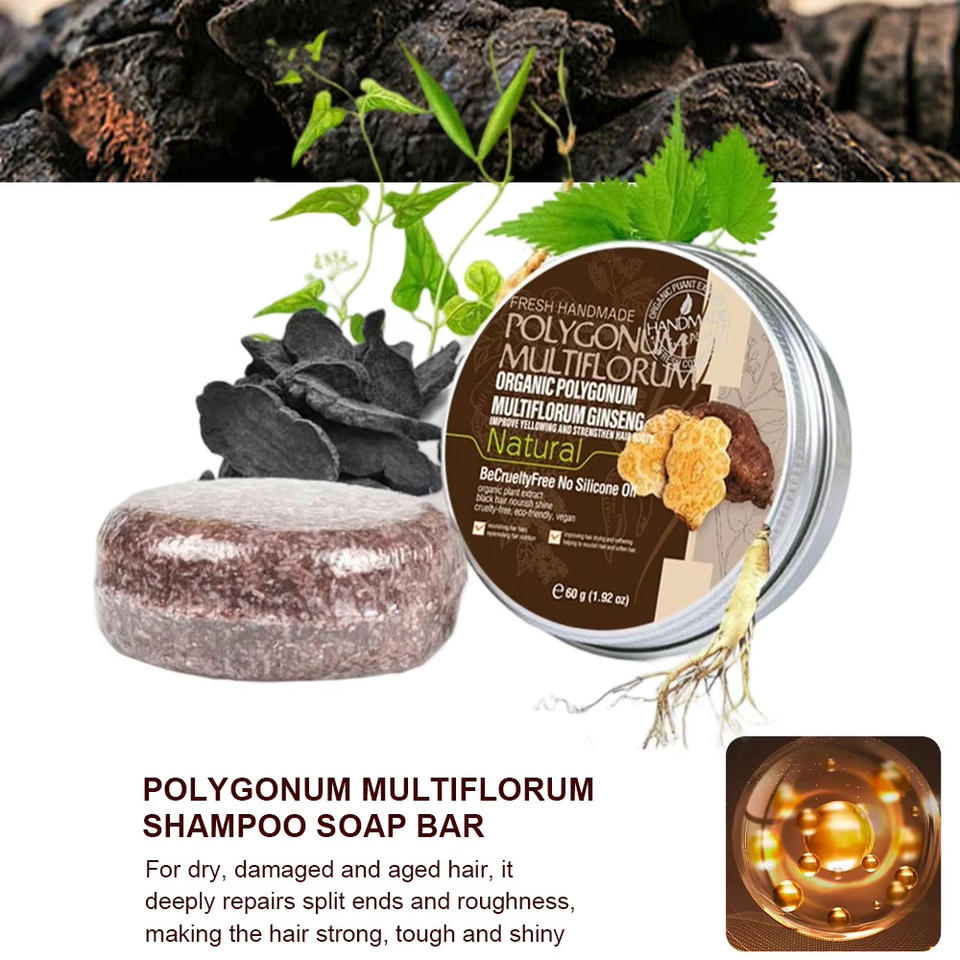 Shampooing en barre à l'odeur de fleurs Polygonum Multiflorum Cadeau Naturel Cheveux secs et abîmés Essence de plantes Huile Favoriser la croissance des cheveux Savon shampooing