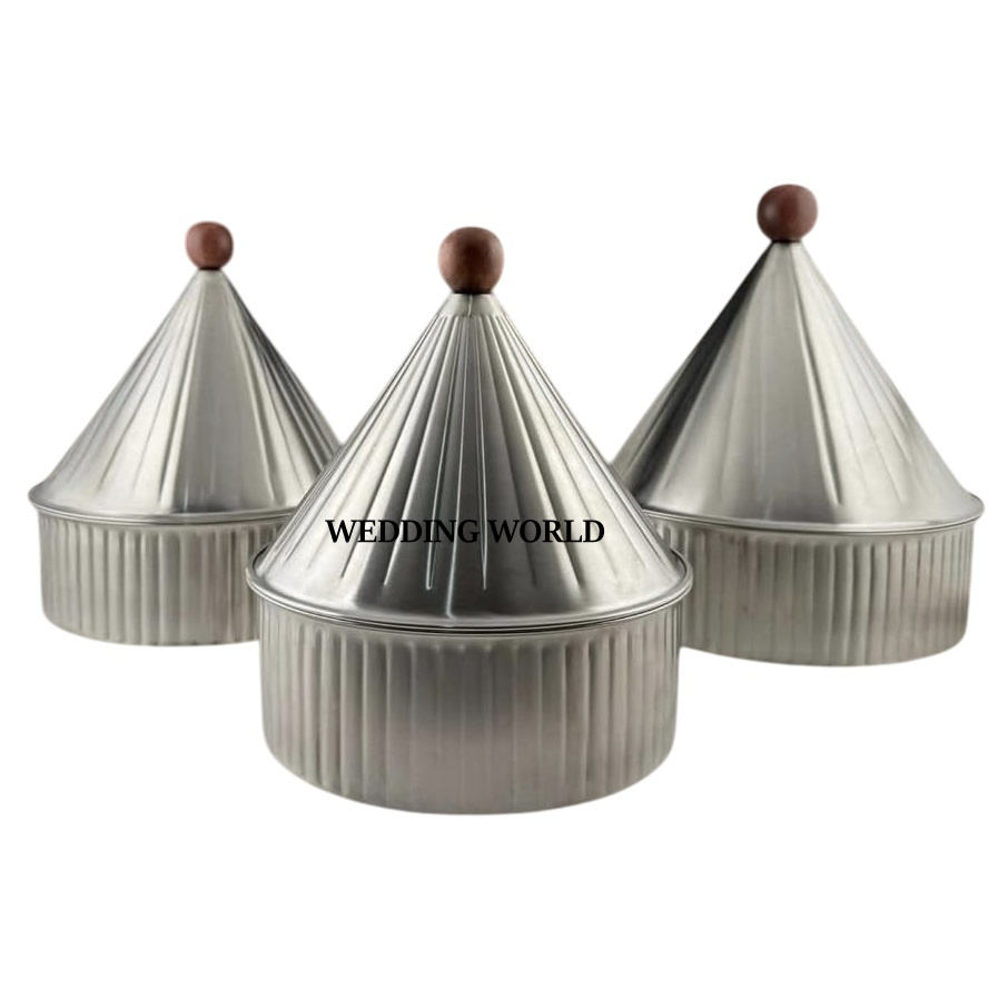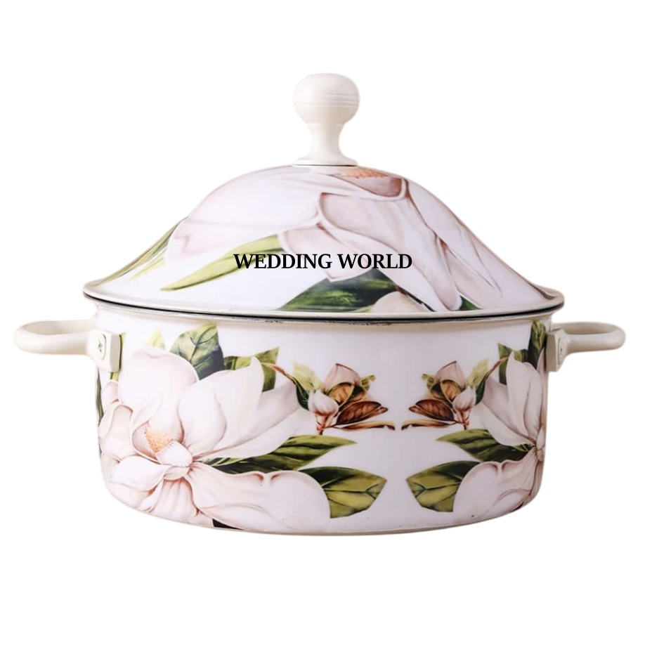 Chauffe-plat de luxe rond en métal Meena, design floral, finition designer, pour maintien au chaud des aliments