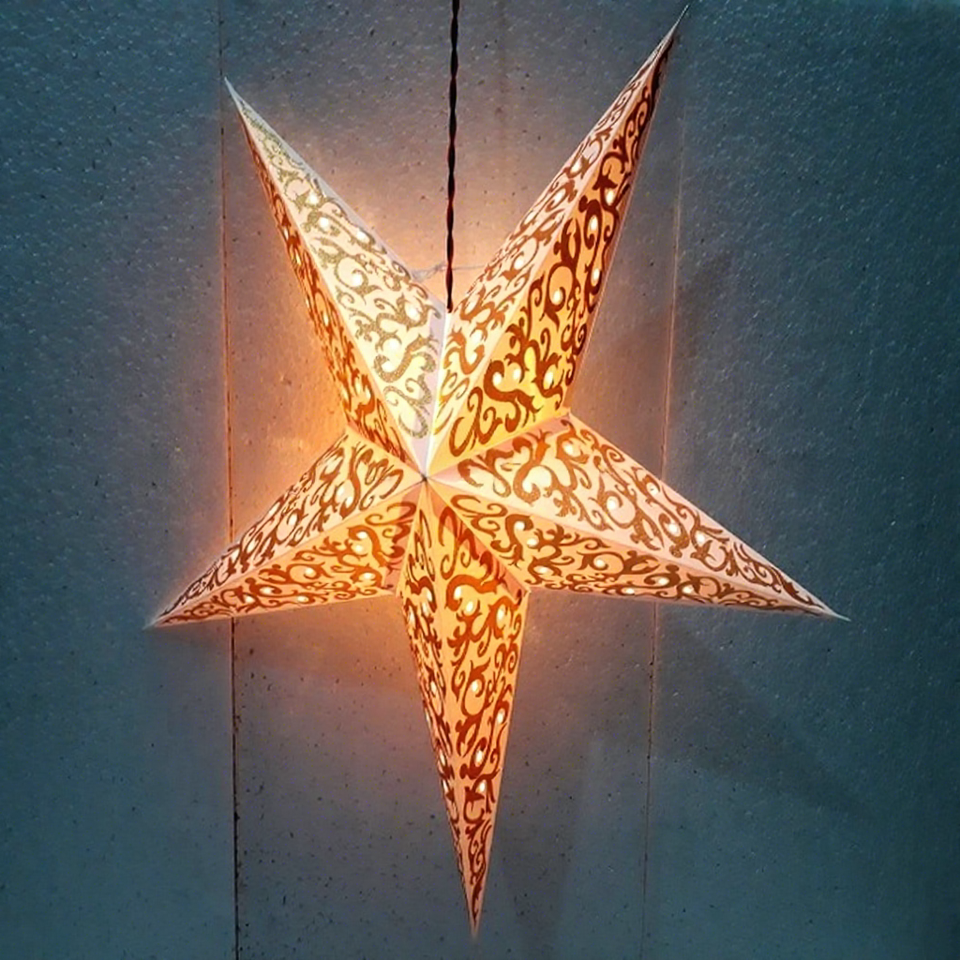 Lampes/Lanternes en papier imprimé fleurs, en forme d'étoile à 5 branches, 60 cm, décoration de Noël, marque LAXMANS, vente en gros, export en vrac
