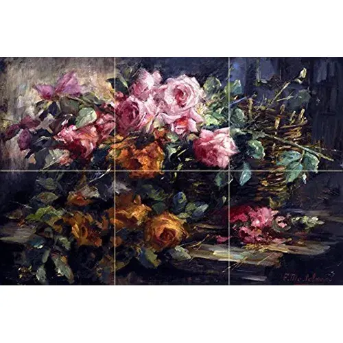 Flowers and Roses Basket Tile Mural Kitchen and Bathroom Wall Backsplash in Marble Ceramic Product Category Wall Murals