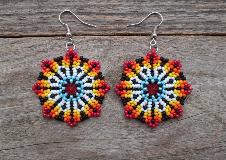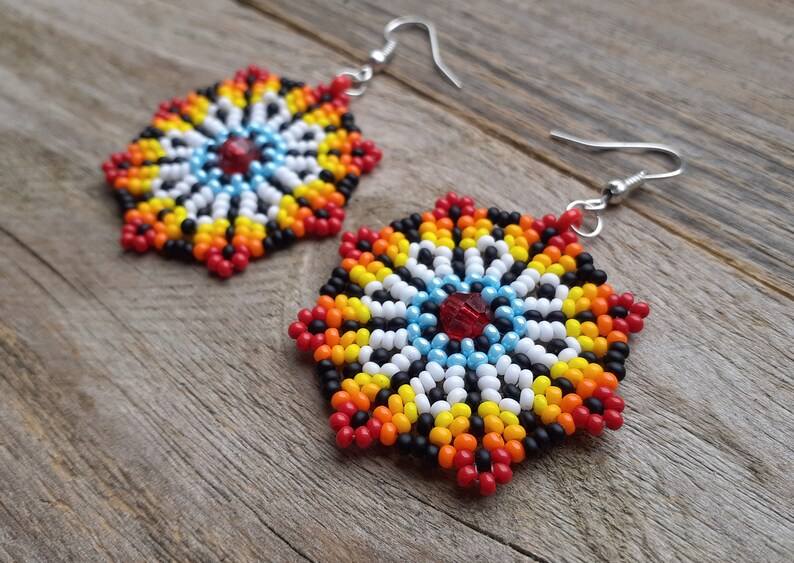 Flowers beaded earrings for women girl Hand woven seed bead hippie dangle Floral large jewelry Big round colorful earrings