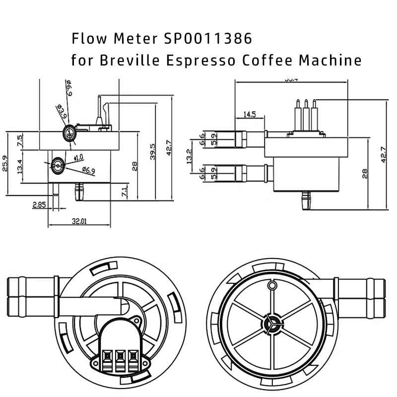 Débitmètre pour machine à café, pièces de rechange pour machine à expresso, compatible avec les modèles Breville Sage Barista Express 875/870/878/876/880