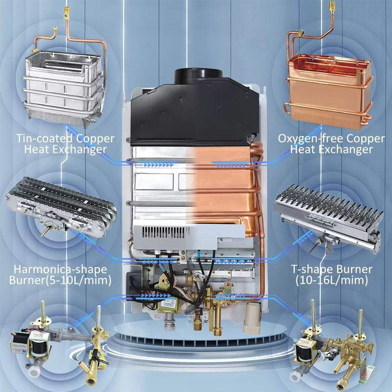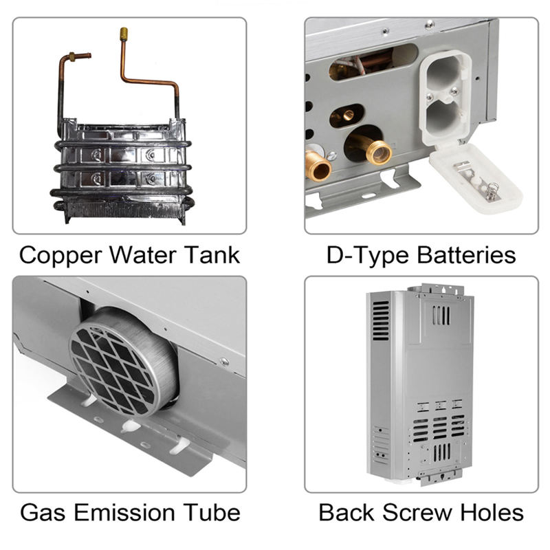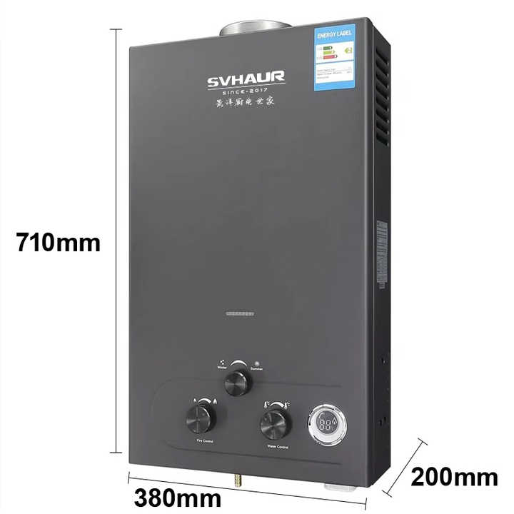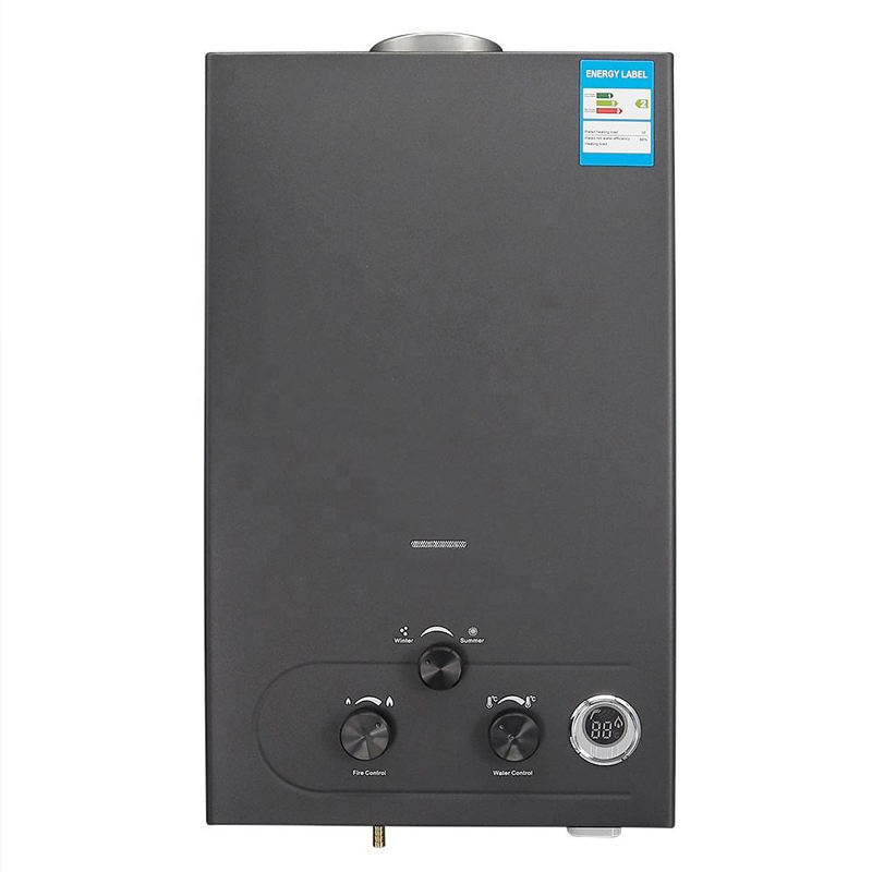 Chauffe-eau instantané sans réservoir à gaz automatique alimenté par batterie avec affichage LED en acier inoxydable de type cheminée