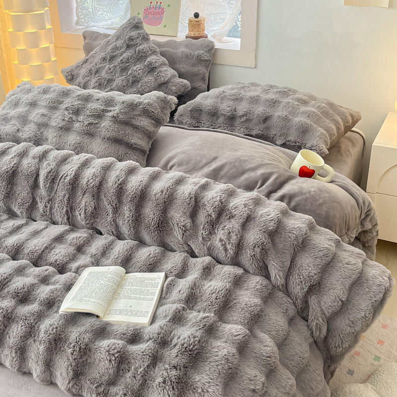 Ensemble de housse de couette en fausse fourrure de lapin moelleuse, ensemble de literie en duvet doux et chaud pour l'hiver