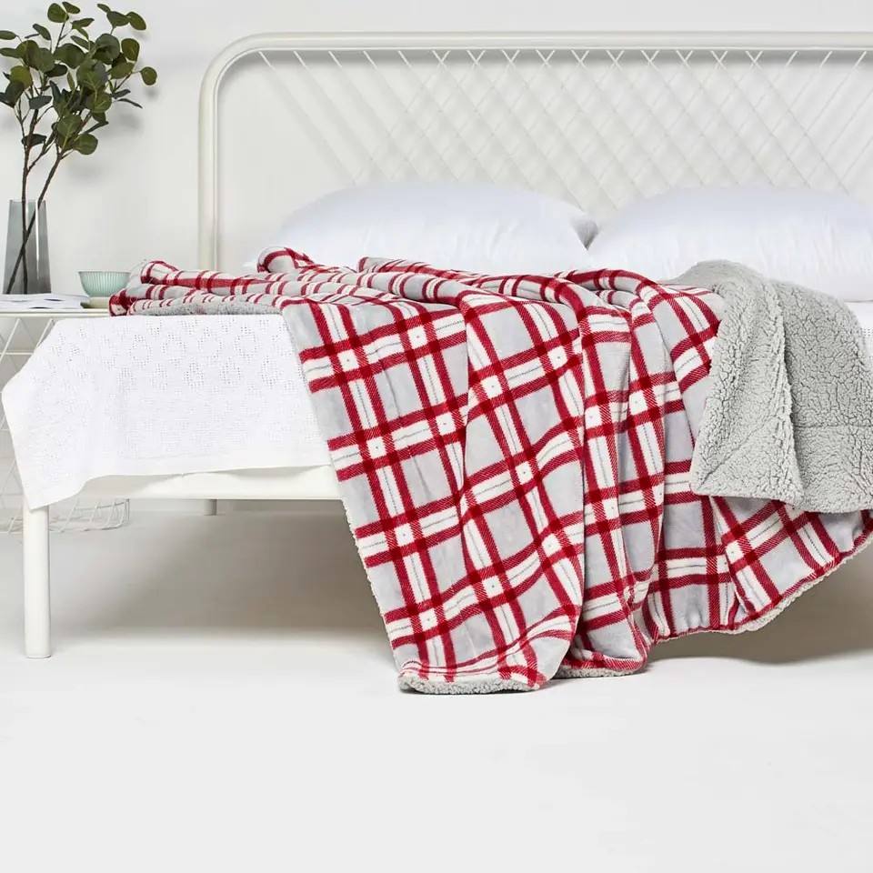 Product Name:Fluffy Red Checkered Coral Flannel Fleece Blanket for Couch Bed