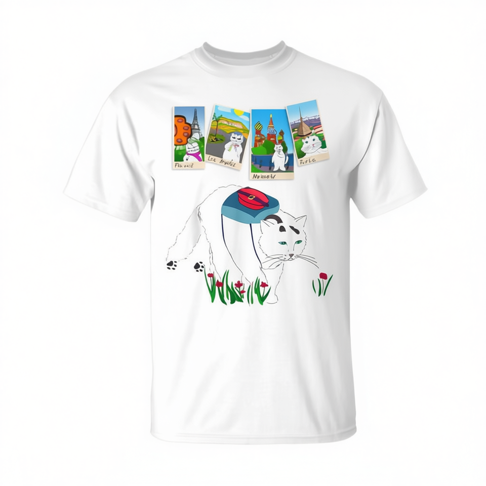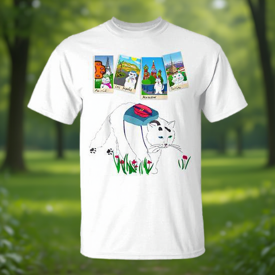T-shirt Fluffy The Cat Travels In Turin Moscou Los Angeles Paris