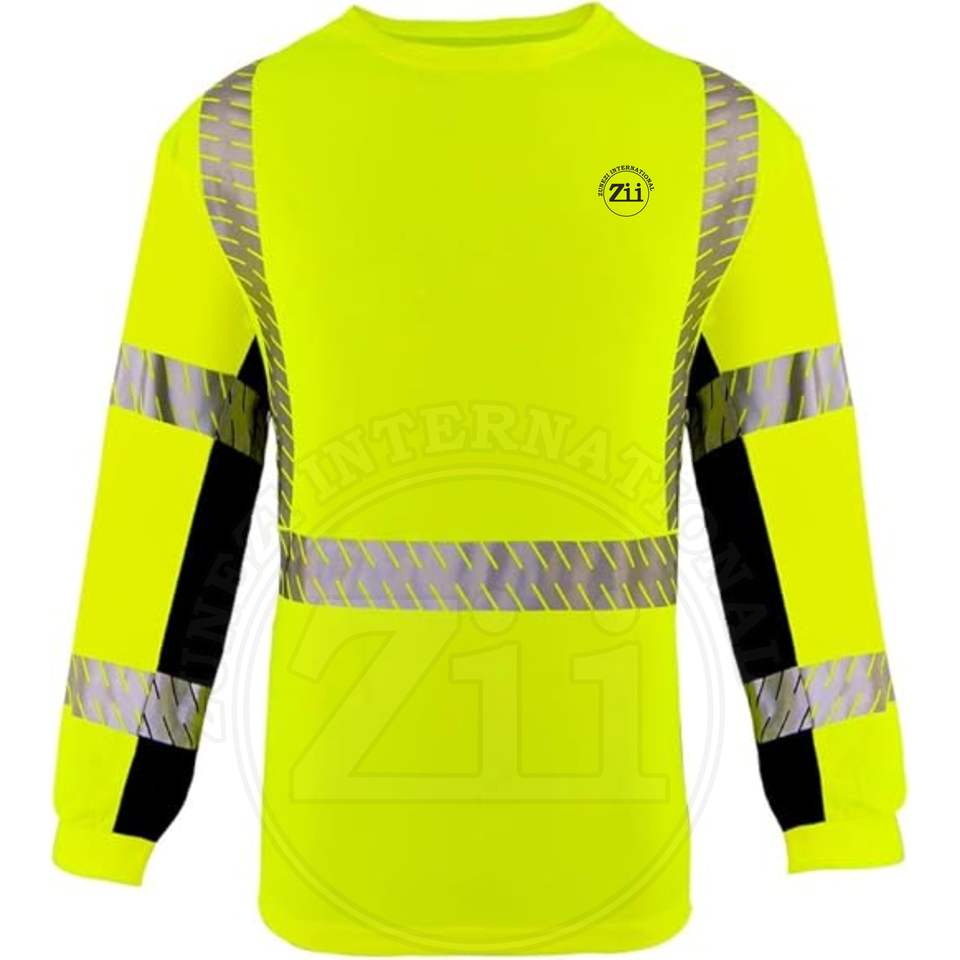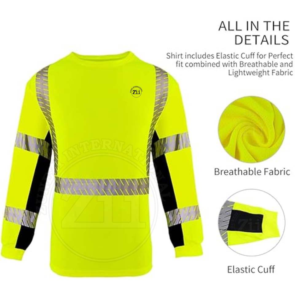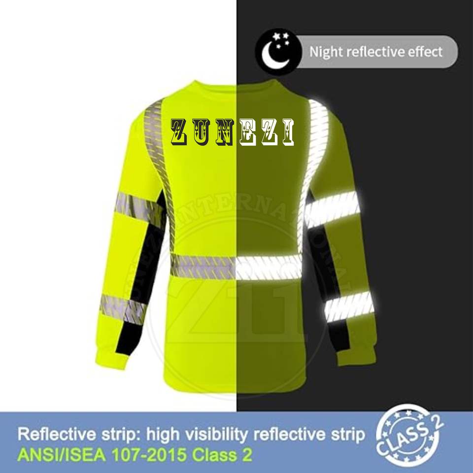 T-shirt à manches longues fluorescent haute visibilité réfléchissant FR, classe 1 ANSI, imperméable, avec éclairage LED, respirant, vêtements de sécurité